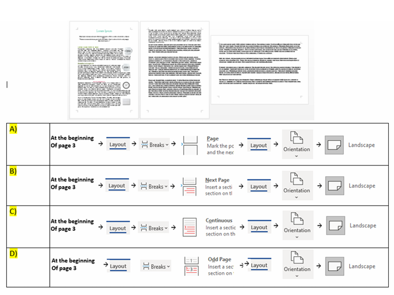 Q13. In your document below consist of 3 pages. How do you set the 3rd page to landscape orientation?
