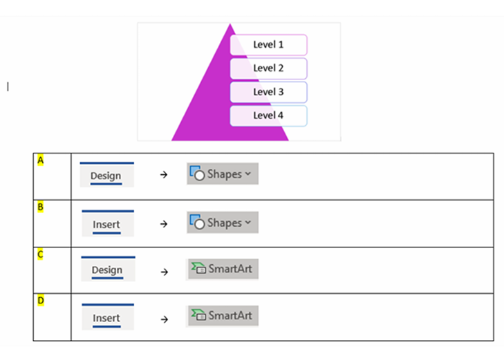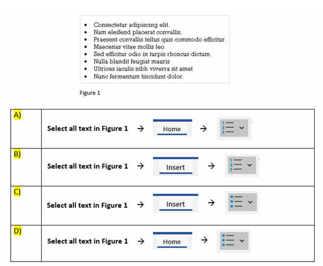 Q14. You document requires you to list down items in a list. How do you create the list as shown below?