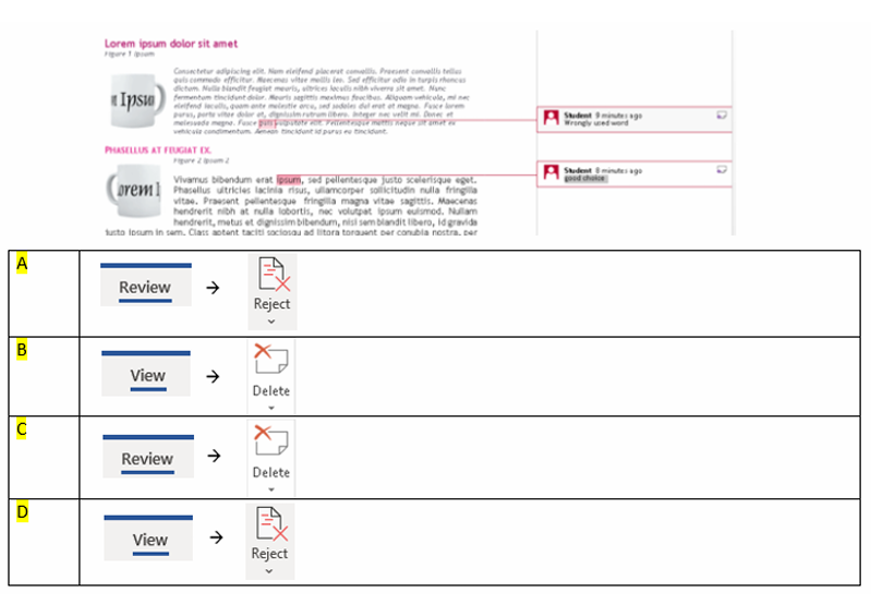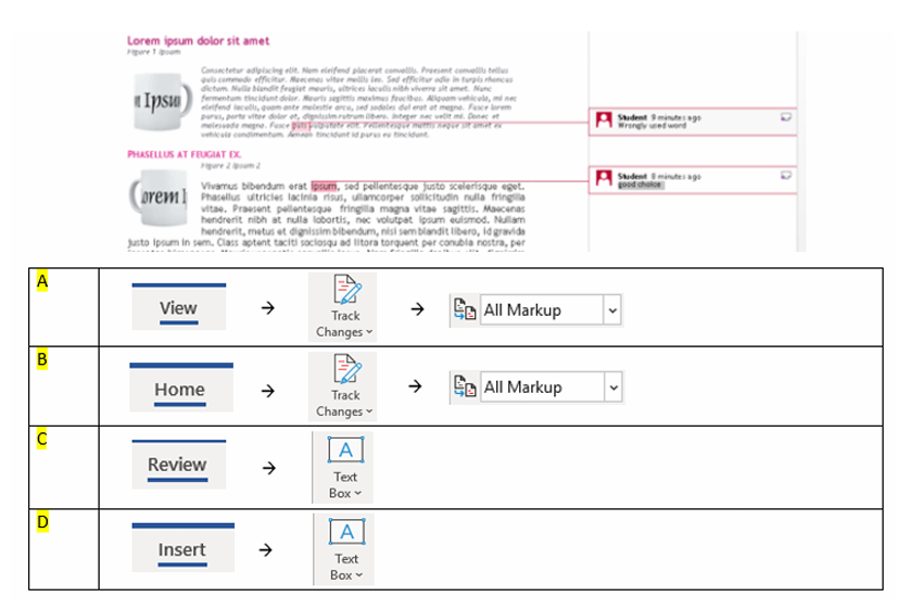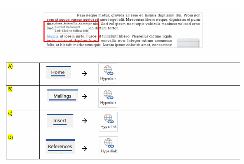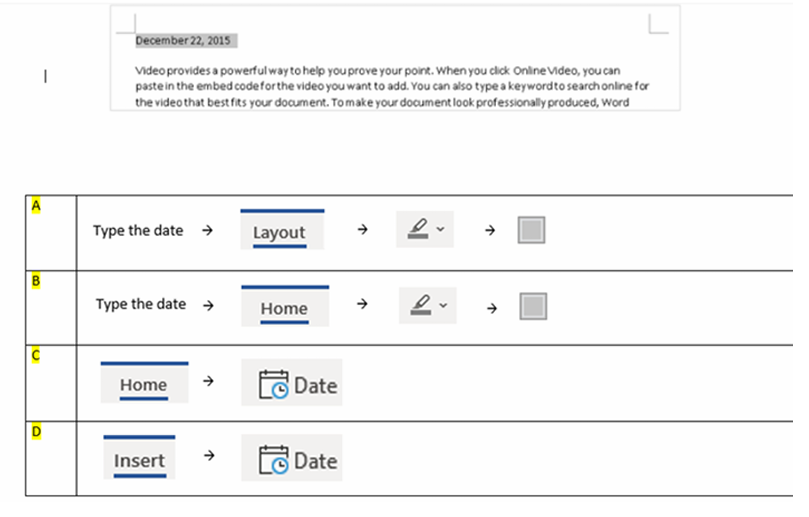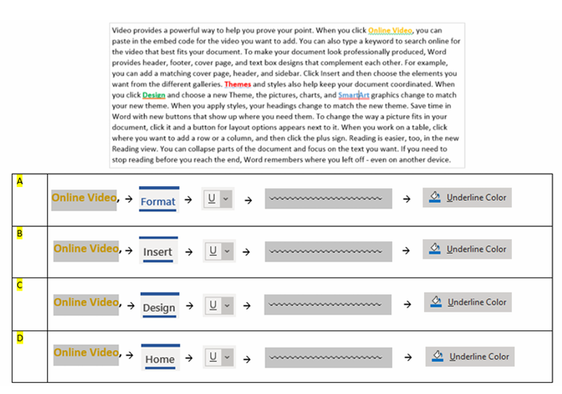Q23. You would like to format the highlighted word “video” in the document below, to bold, italic and blue in color. Which is the fastest way to do this?