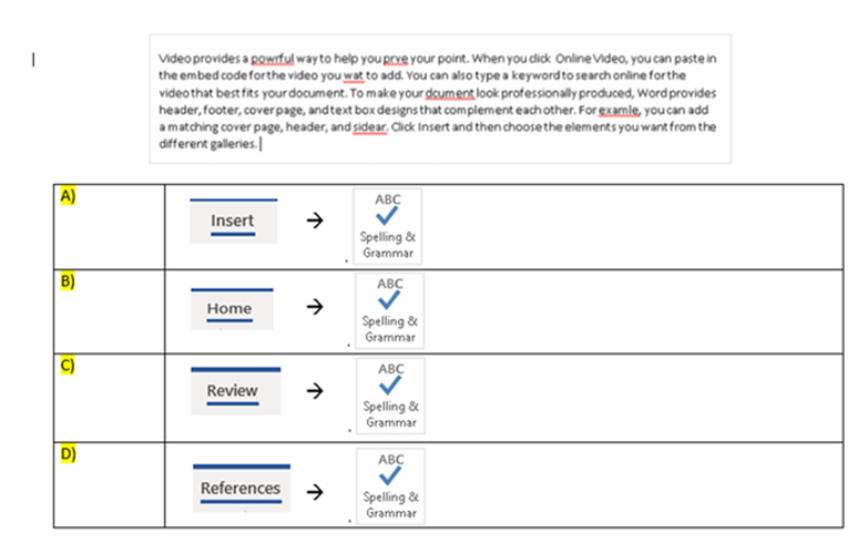 Q21. In the document below, you noticed some there are spelling errors on. How do you check the spelling to ensure that this document is free of spelling errors?