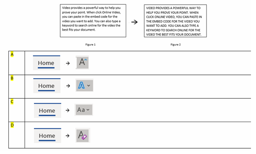 Q3. Your document displayed in Figure 1 are in caps and lower case. How do change the entire paragraph to depict Figure 2?