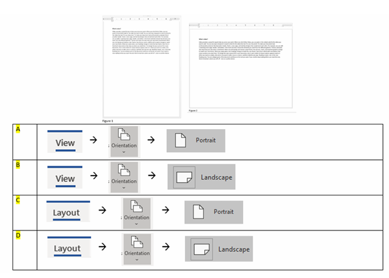 Q5. Your current document shown in Figure 1 will be printed vertically. How do you print it horizontally as shown in Figure 2?