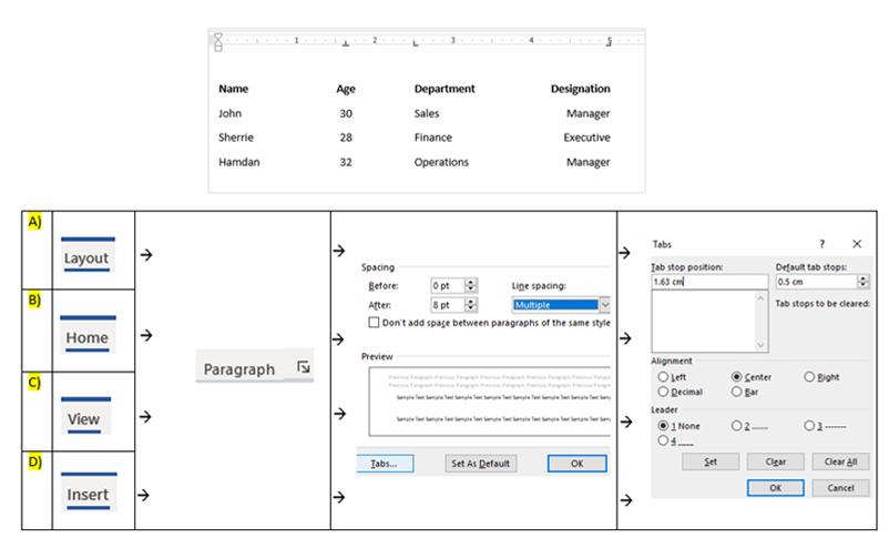 Q6. You document contains 4 columns. You would like align them as shown in the diagram below. How do you align these text?