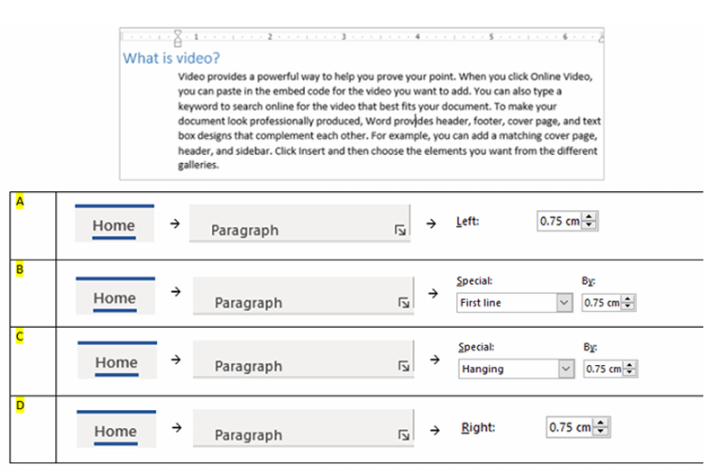 Q9. The paragraph below shows that it start ¾” away from the margin. How do you create this?